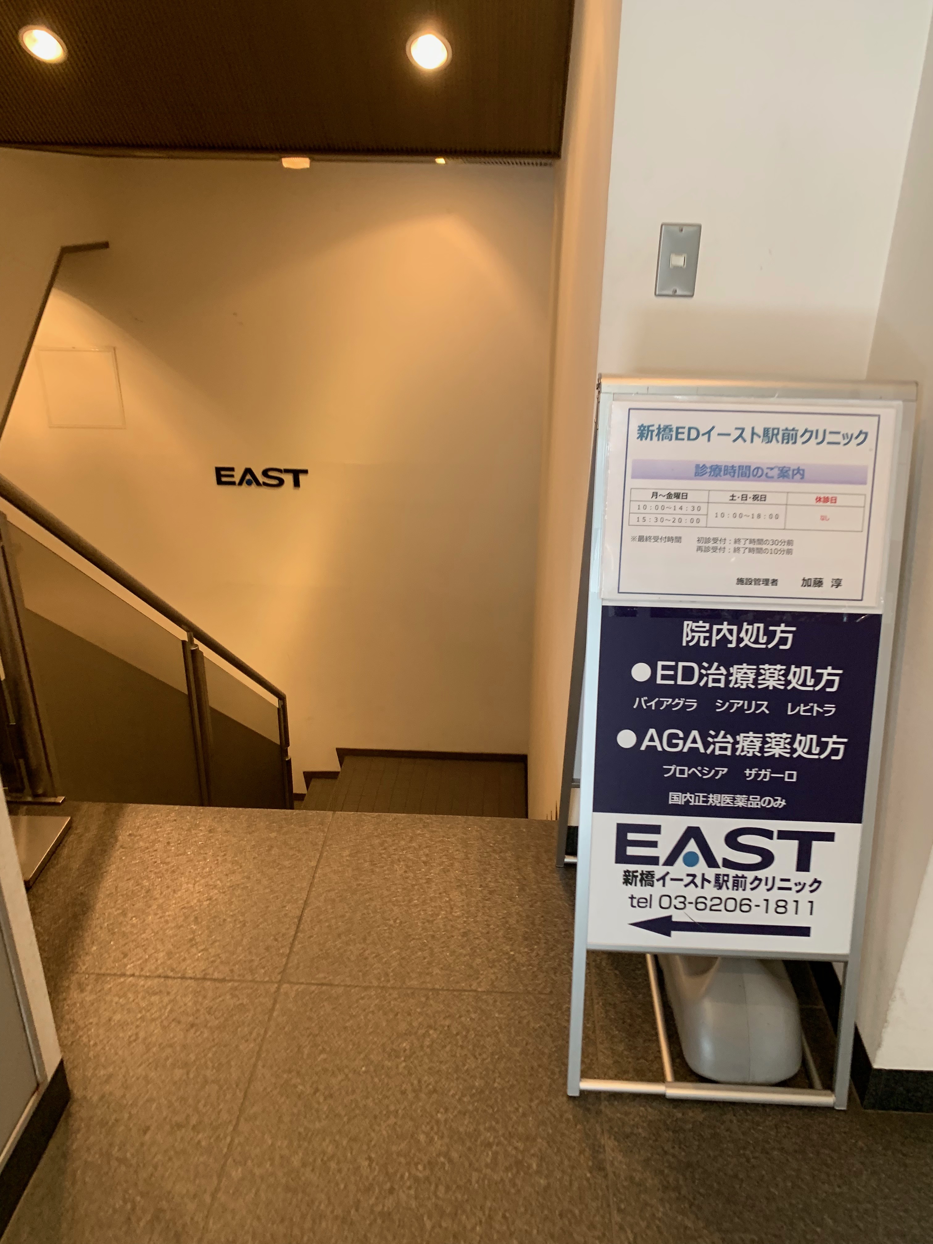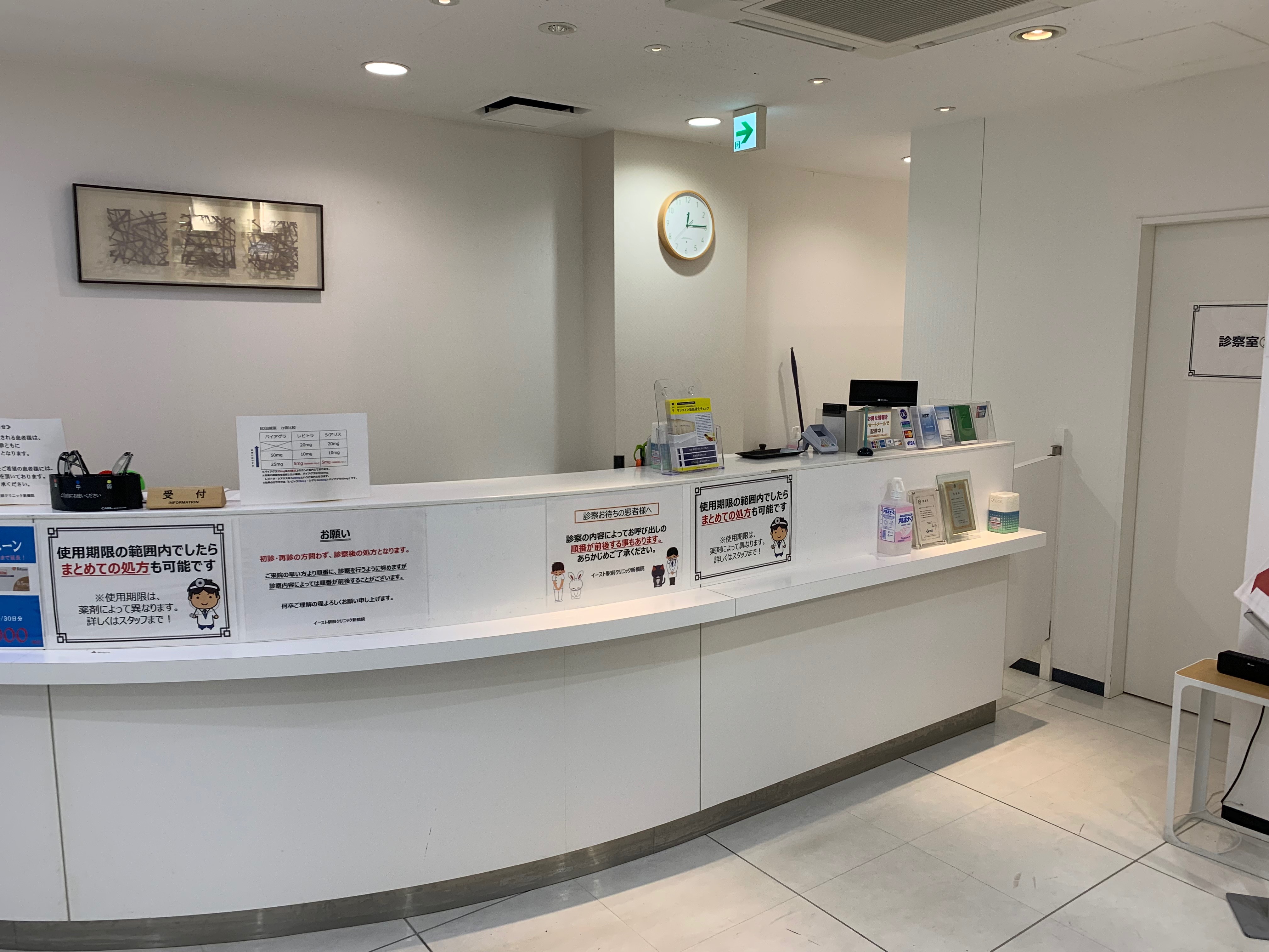 EDで調べるとたくさんの病院が出てきて困るのですが、素早い処方が評判の「イースト駅前クリニック」の新橋院にお邪魔することにしました。