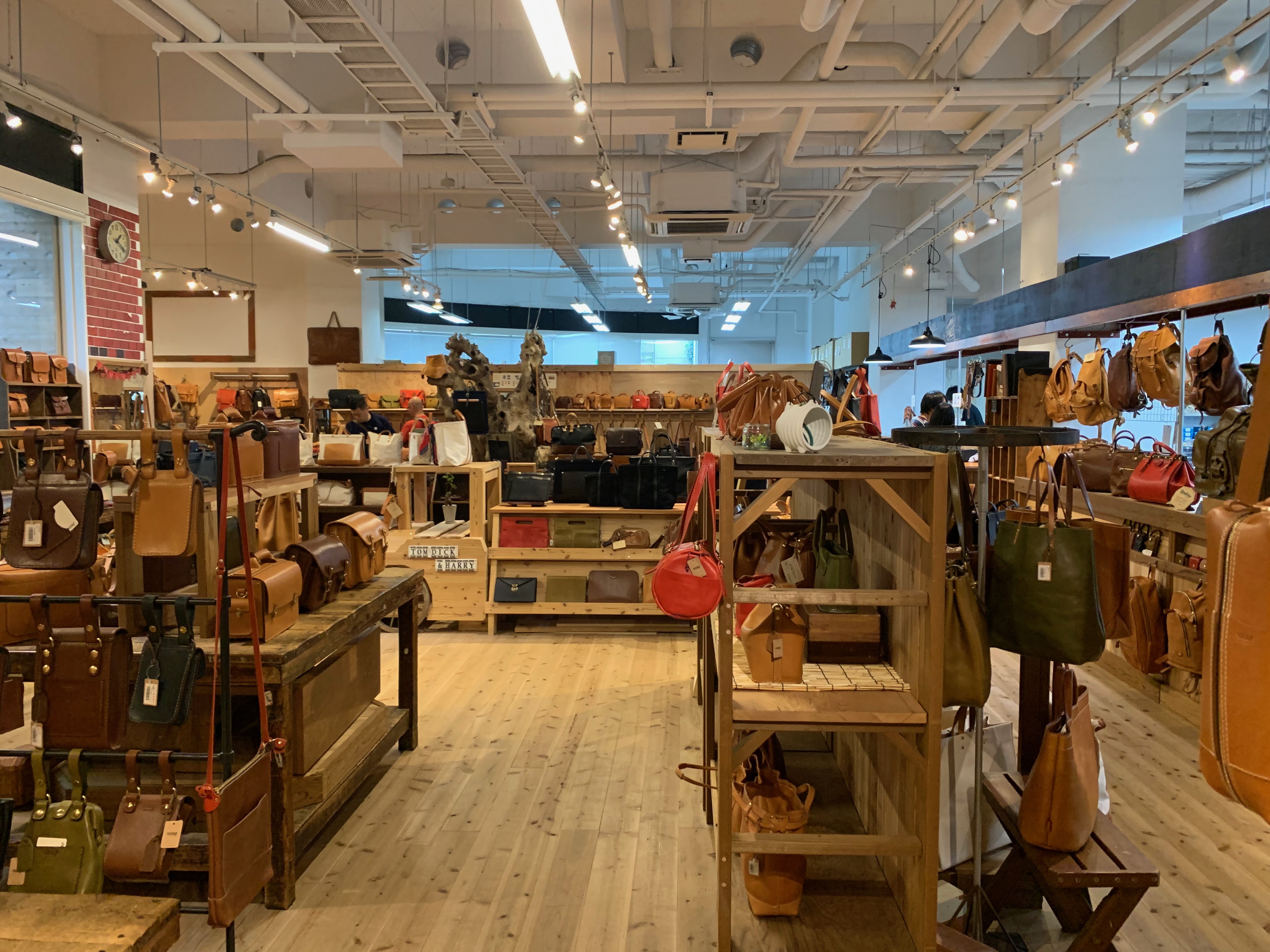 広いフロアの奥に併設された工房で実際に鞄の製作現場を、